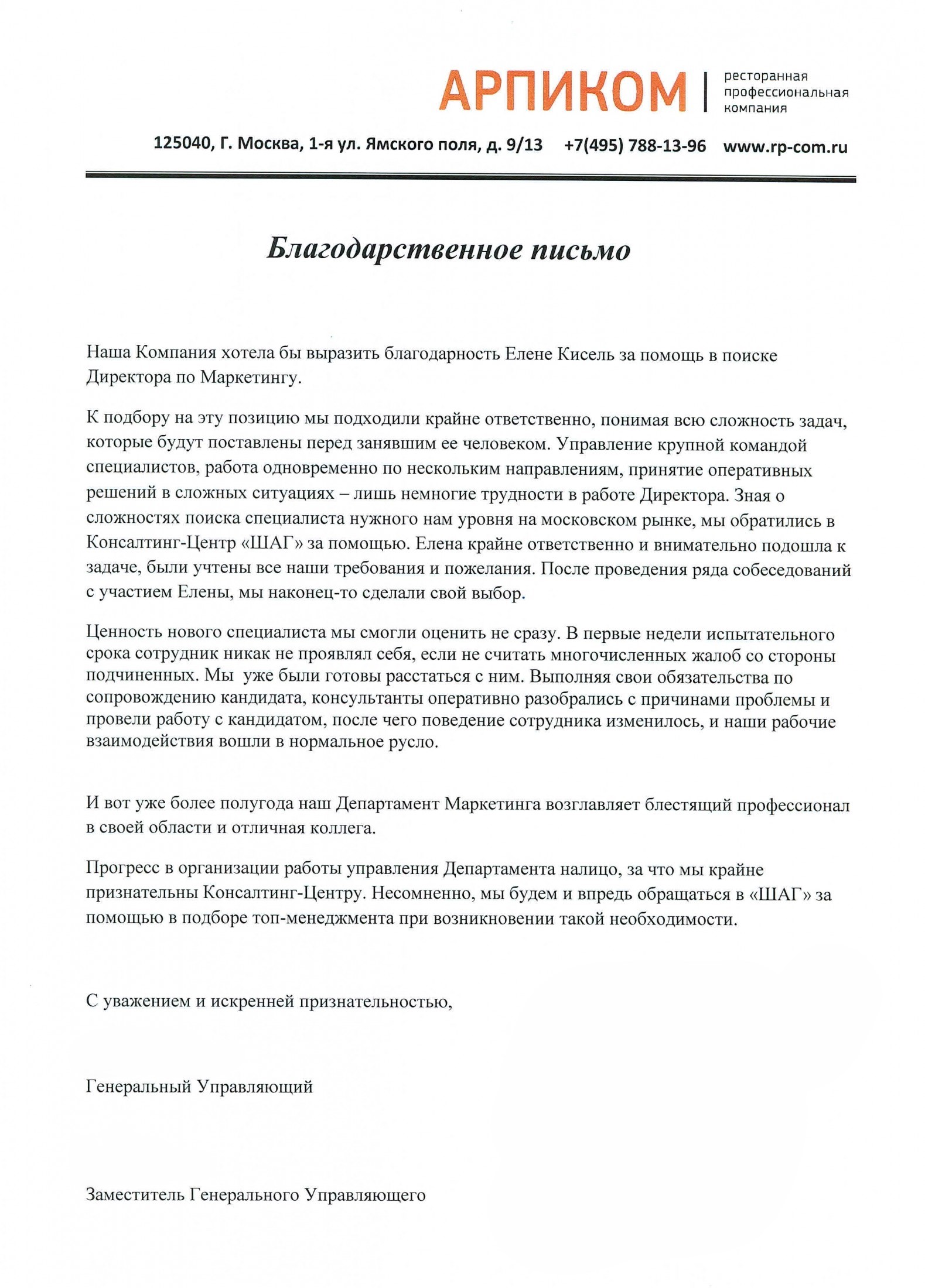 Наша Компания хотела бы выразить благодарность Елене Кисель за помощь в поиске Директора по Маркетингу.