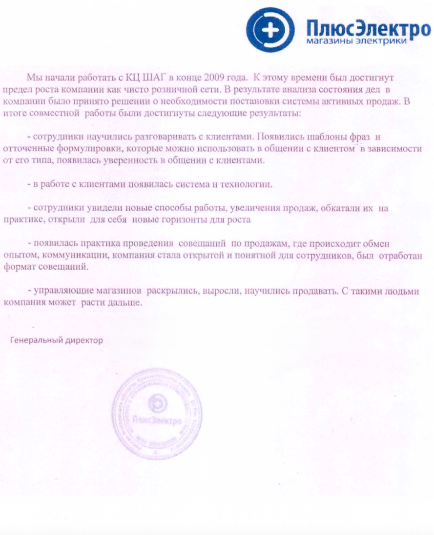 Мы начали работать с КЦ ШАГ в конце 2009 года. К этому времени был достигнут предел роста компании как чисто розничной сети. В результате анализа состояния дел в компании было принято решение о необходимости постановки системы активных продаж. В итоге совместной работы были достигнуты следующие результаты: