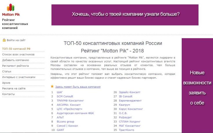Консалтинг-Центр «ШАГ» возглавляет рейтинг лучших консалтинговых компаний России