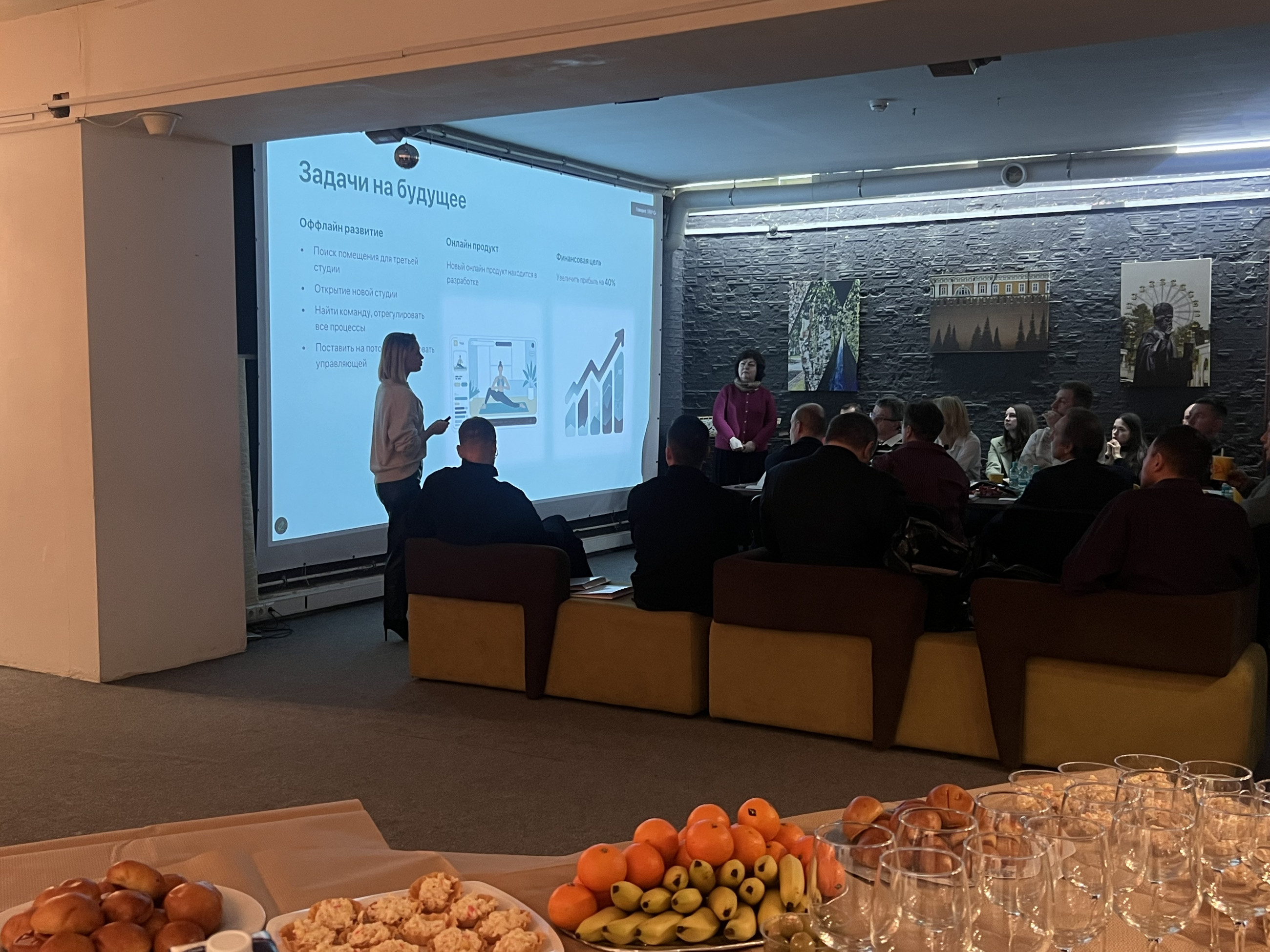 Перед экспертами и зрителями выступил Константин Южный. Он рассказал о том, как ему пришла идея создать проект ChallengeGo, well-being платформу для сотрудников компаний. Второй выступила Анна Немченко. Она познакомила всех со своим проектом Ocean Yoga Studio. Это сеть студий йоги в Москве.